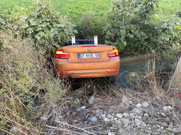 Araç, sürücünün direksiyon hakimiyetini kaybetmesi sonucu yoldan çıkarak sulama kanalına düştü.