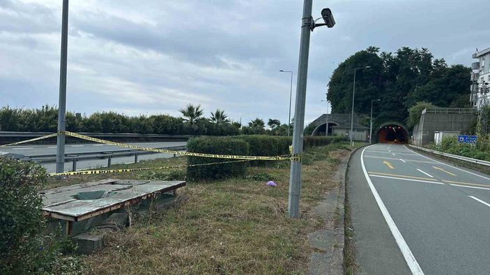 İnce bu sırada, Karadeniz Sahil Yolu orta refüjü üzerindeki alt geçidin plastik olan çatısının kırılması üzerine aşağıya düştü.