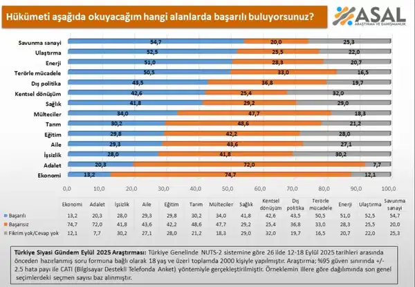 Araştırma şirketi ASAL’ın AKP iktidarının hangi alanlarda başarılı olduğuna dair yaptığı araştırmadan çıkan sonuçlar dikkat çekti.
