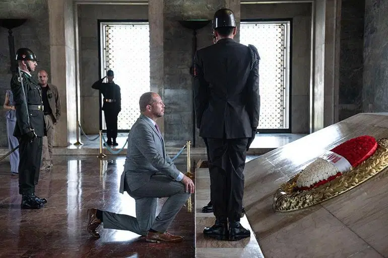 Bakan Francken’in Atatürk’ün mozolesi önünde dik çöktüğü görüntüler sosyal medyaya da yansıdı.