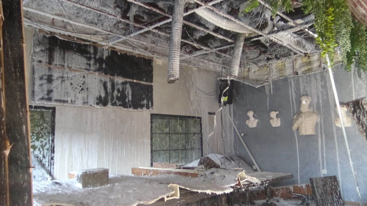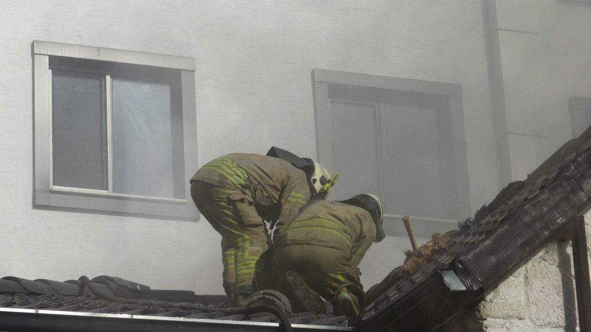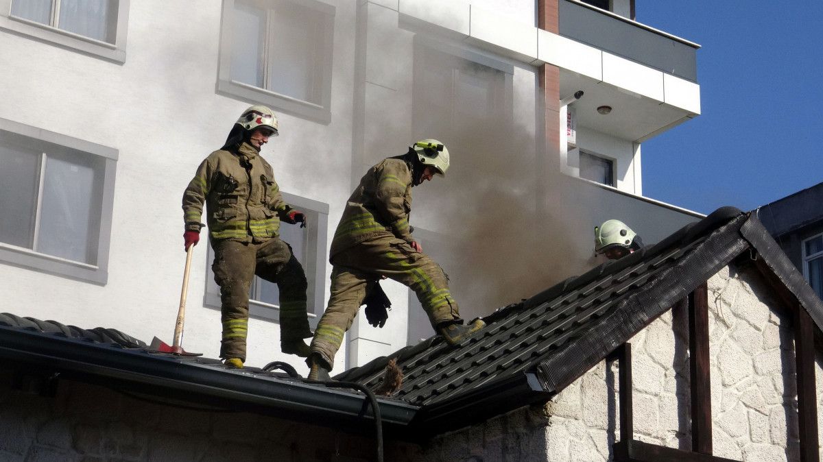 Ardından çatıyı kırarak delik açan ekipler, içeride biriken dumanı tahliye etmeye çalıştı.