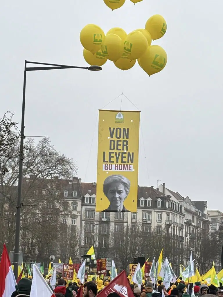 Çiftçilerin tepkisinin odağında Avrupa Komisyonu Başkanı Ursula von der Leyen yer aldı. Von der Leyen’in, Paraguay’da Mercosur ülkeleri Arjantin, Brezilya, Paraguay ve Uruguay ile serbest ticaret anlaşmasını imzalaması protestolara gerekçe gösterildi.