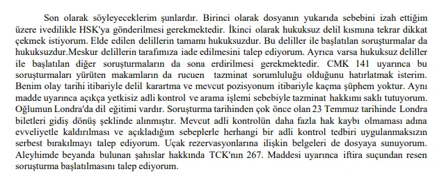 “Kürşat Yılmaz isimli şahıs ile bir irtibat kurduğumu hatırlamıyorum. Atalay ile ilgili zaten dolandırıcı olduğunu beyan etmiştim. Atalay’ın bu yöndeki beyanlarını da kabul etmiyorum. Zihni Çakır, Fetö kumpas dosyalarında lehine tanıklık yapmıştır. Kendisi talimat aldığı kişilerin emri ile bana kumpas kurmaktadır.”