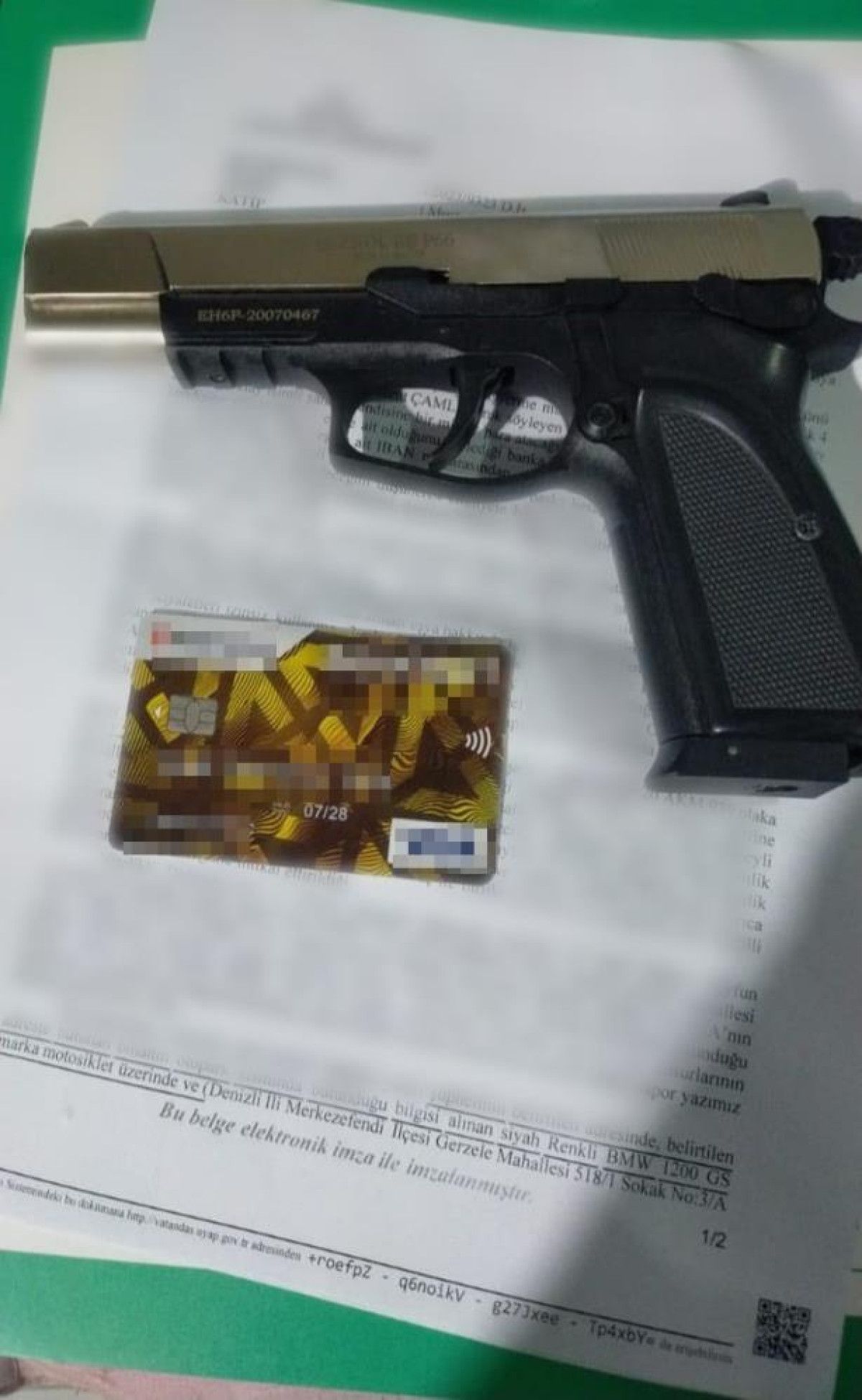 Aramalarda 1 adet sahte savcı kimliği ve kokartı, başka şahıslara ait 2 adet kimlik, sahte savcı kimliğinde kullanılan vesikalık fotoğraflar, 2 adet kaşe, 1 adet kurusıkı tabanca ile çeşitli evraklar ele geçirildi.