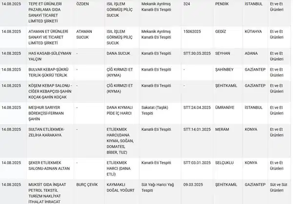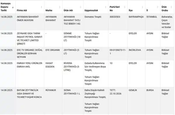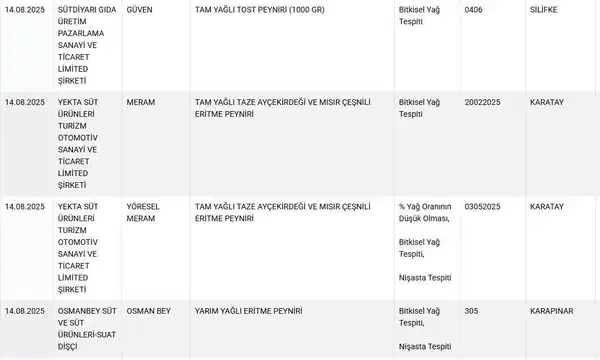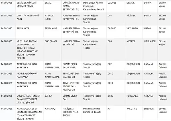 Tarım ve Orman Bakanlığı, gıda ürünlerinde taklit, tağşiş ve insan sağlığını tehdit eden markaları ifşa ettiği listesini güncelledi.