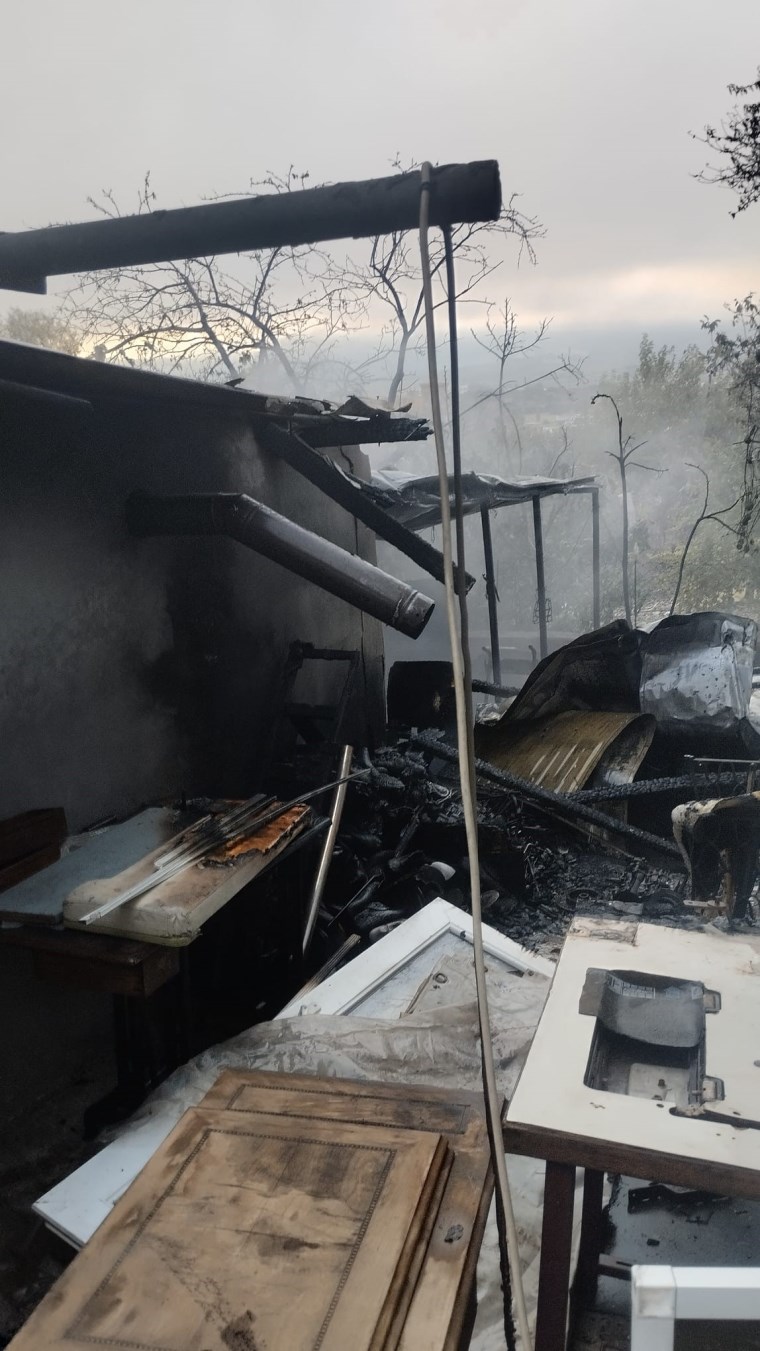 Çıkan yangında ev yanarak kullanılamaz hale geldi.