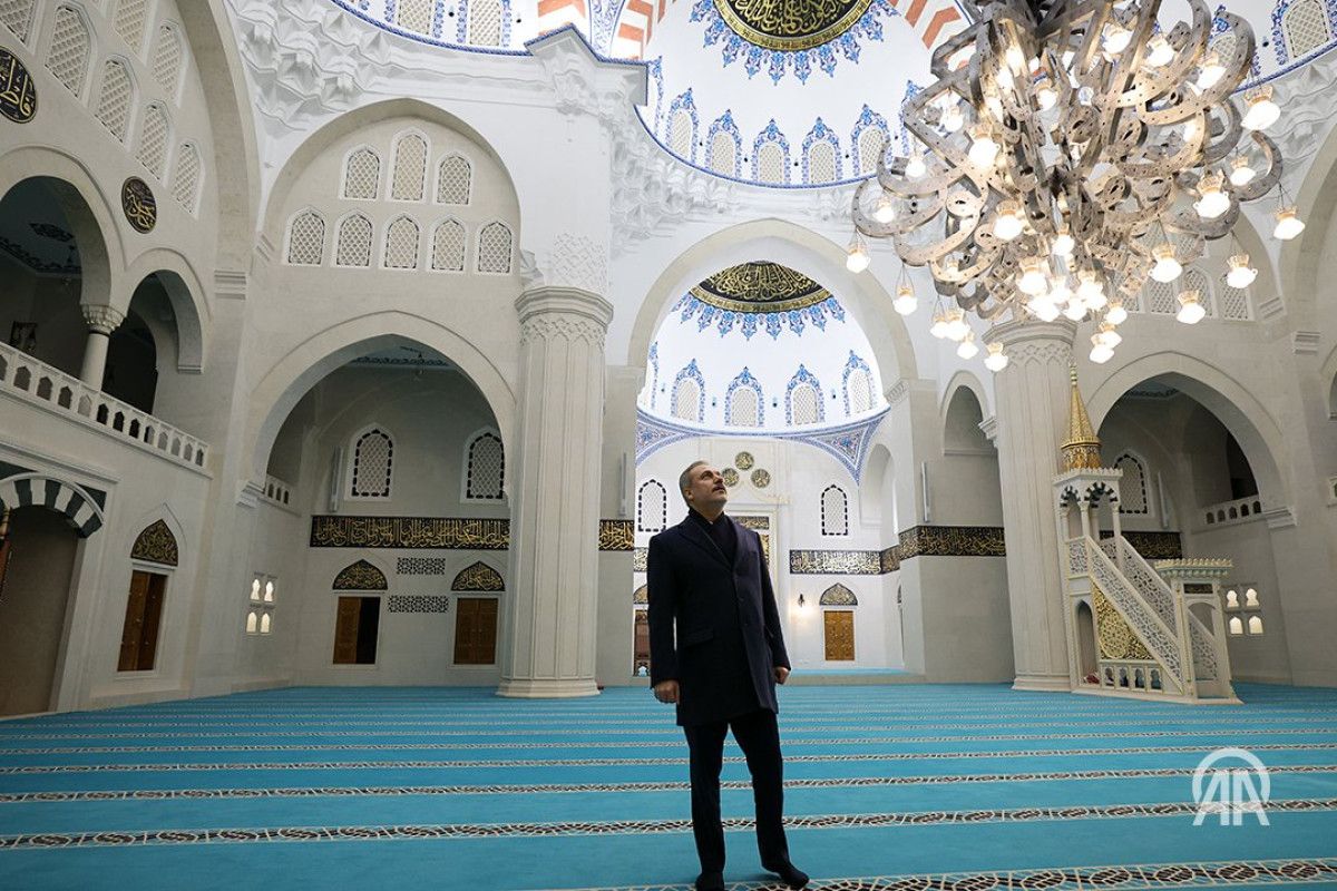 Paylaşımda, Fidan’ın, camiyi incelerken ve halkla sohbet ederken çekilen fotoğraflarına yer verildi.