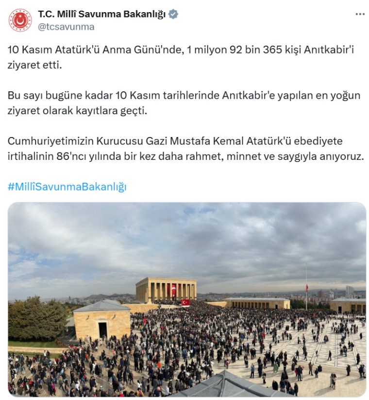 Milli Savunma Bakanlığı, Anıtkabir ziyaretçilerine ilişkin 10 Kasım verilerini açıkladı.