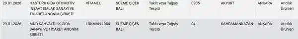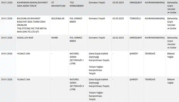 Tarım ve Orman Bakanlığı, Türkiye’nin 81 ilinde yapılan denetimlerin ardından ürünlerinde taklit ve tağşiş yaptığı anlaşılan firmaların listesini yayımlamaya devam ediyor.