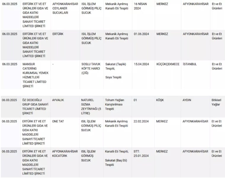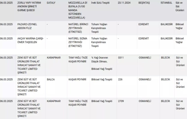 İşte gıdada hile yapan yeni firmalar ve ürünler: