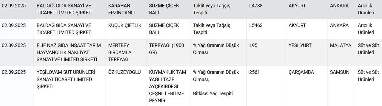Türkiye’nin tamamında yapılan denetlemelerin ardından kapsamlı bir liste yayımlayan Tarım ve Orman Bakanlığı, taklit ve tağşiş ürün satışında bulunduğu tespit edilen firmaları kamuoyuna duyurmaya devam ediyor.