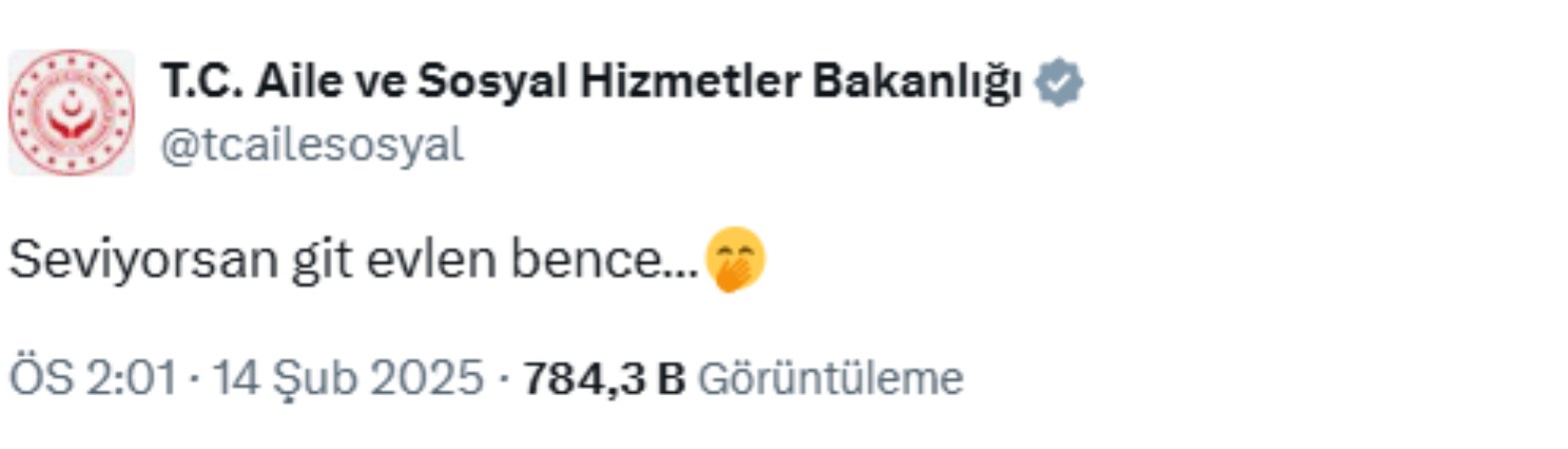 Aile ve Sosyal Hizmetler Bakanlığı’nın sosyal medya hesabından ’14 Şubat Sevgililer Günü’ nedeniyle paylaşım yapıldı.