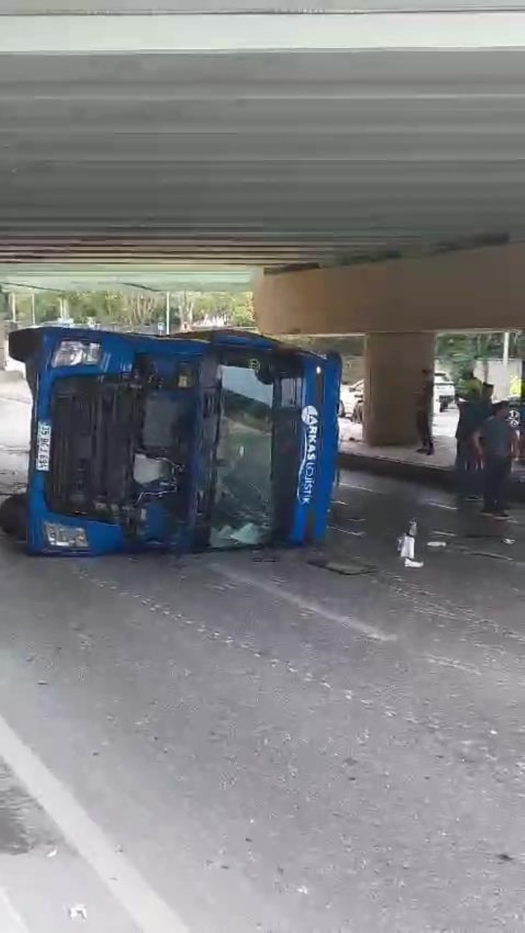 Bakırköy’de alt geçide çarpan TIR, Halkalı Eminönü seferini yapan İETT otobüsünün üzerine devrildi. Otobüs son anda TIR’ın altında kalmaktan kurtuldu.