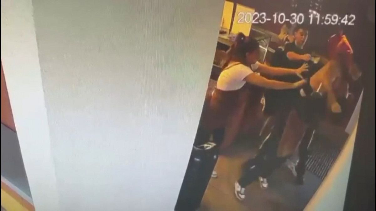 Yerde de bir süre vurmaya devam eden saldırganı, müşteriler uzaklaştırmayı başardı.