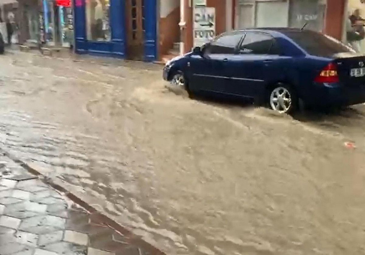 Edremit ilçesinde de etkili oldu. İlçenin Çayiçi Caddesi kısa sürede suyla doldu, vatandaşlar yolun karşısına geçerken zor anlar yaşadı.