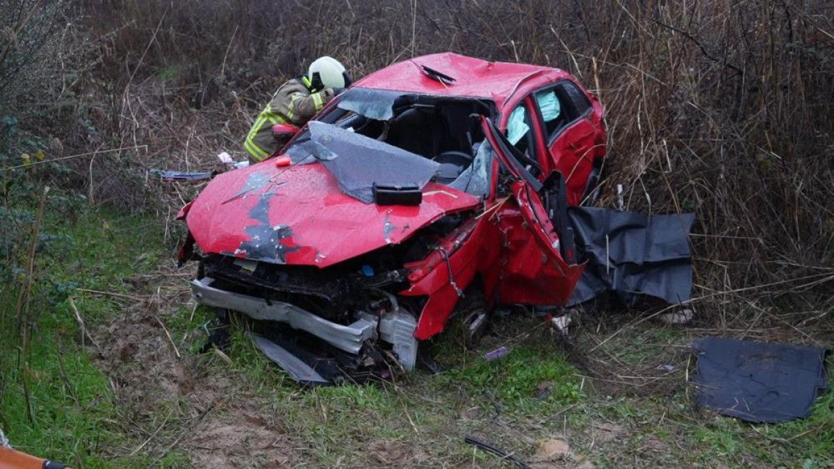 İzmir-Çanakkale karayolu Pelitköy kavşağında nedeniyle kayganlaşan yolda Kübra G. (31) idaresindeki 17 AFB 614 plakalı otomobil, sürücünün direksiyon hakimiyetini kaybetmesi sonucu taklalar atarak 5 metre yükseklikten şarampole devrildi.