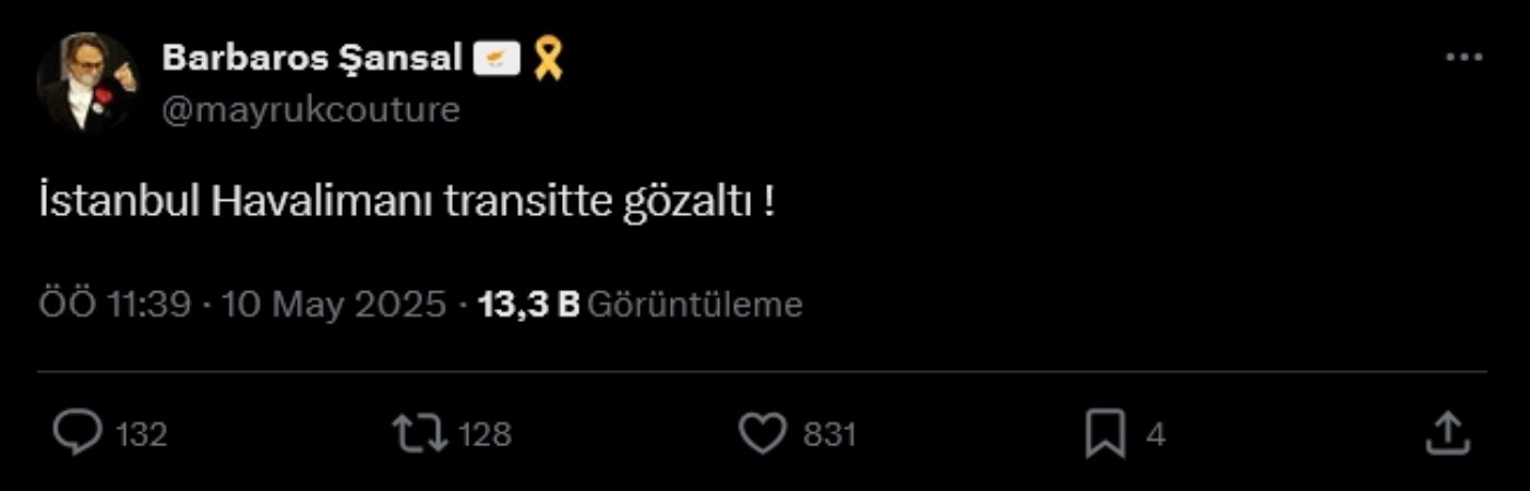 Şansal, “İstanbul Havalimanı transitte gözaltı!” paylaşımını yaptı.