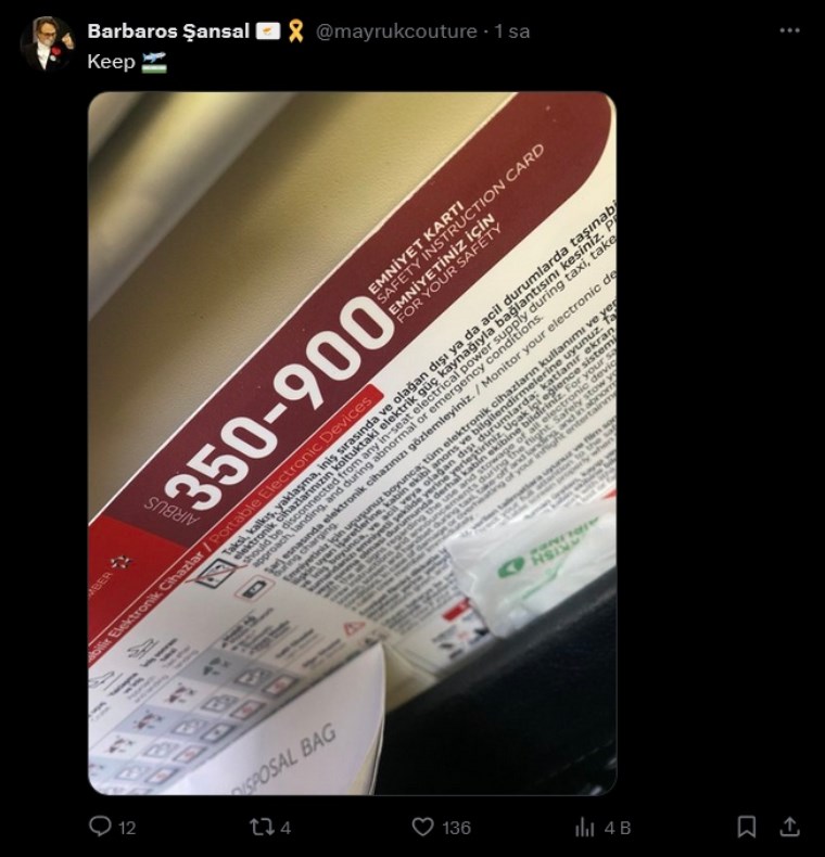 Şansal, gözaltına alınmadan bir saat önce THY’nin uçağını içinden fotoğraf paylaşmıştı.