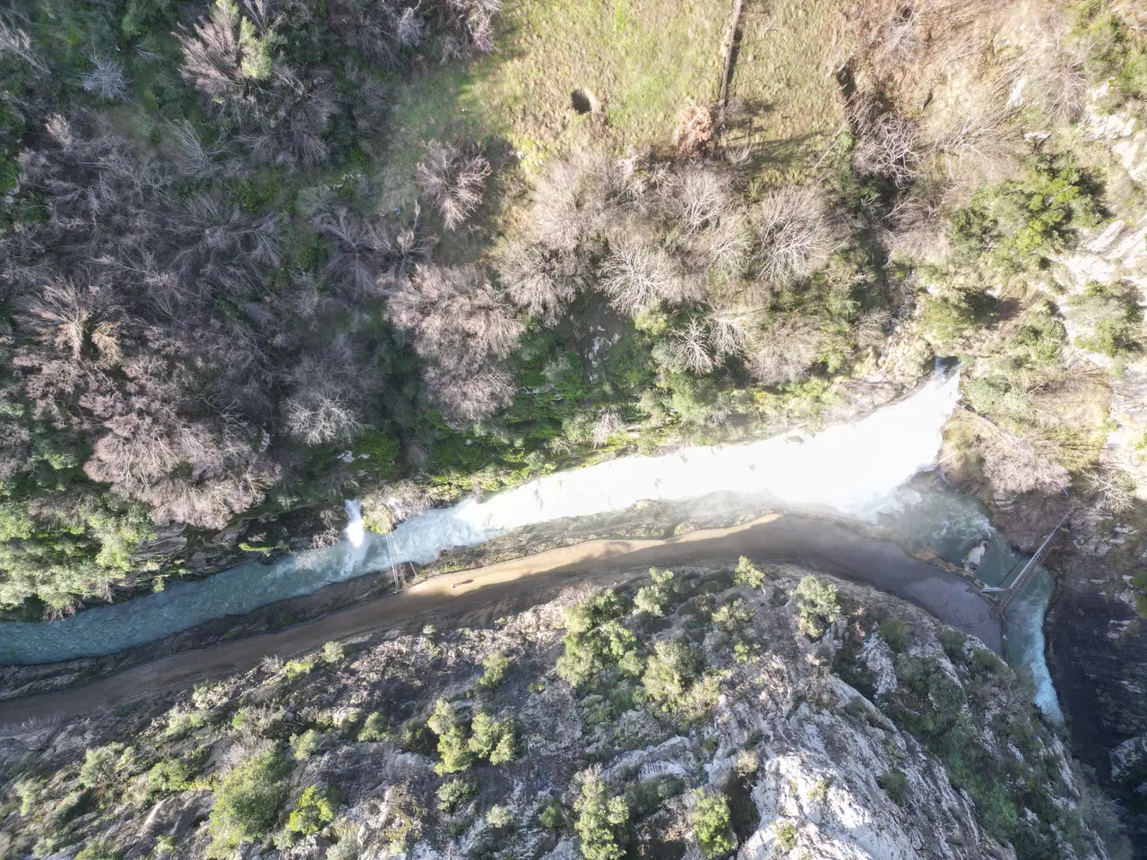 Geçen haftalarda bölgeye yağan 1,5 metre kalınlığındaki kar eridi. Kar suları, mevcut şelalenin yaklaşık 20 metre alt bölümünde kaya oyuğundan akmaya başladı. 10 metre yükseklikten aşağıya suların aktığı yeni bir şelale daha oluştu. Kanyonda oluşan iki şelale ve gökkuşağı manzarası dron ile görüntülendi.