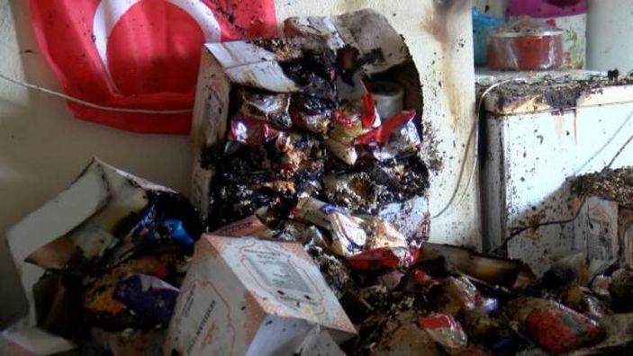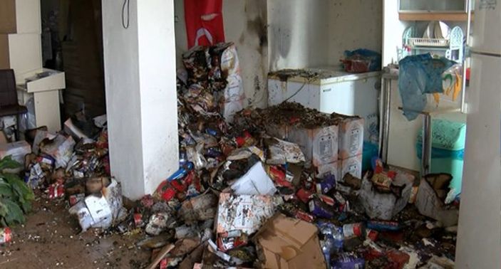 Depremzedeler için toplanan yardım gereçleri yanarak kullanılamaz hale geldi.