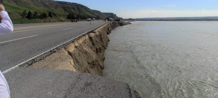 Batman Barajı’nın kapaklarının açılması ile Batman Çayı’nda suların yükselmesinin akabinde Batman-Kozluk karayolunda çökme meydana geldi.