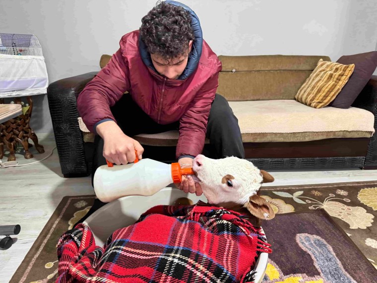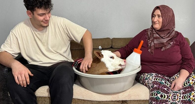Ordu’da çiftçilik yapan Fatma Tulkar (55), Ramazan Bayramı’nın 3’üncü günü doğan buzağısına ‘Bayram’ ismini verdi. Tulkar, hava kararınca ‘üşümesin’ diye buzağıya evinin salonunda bakıyor.