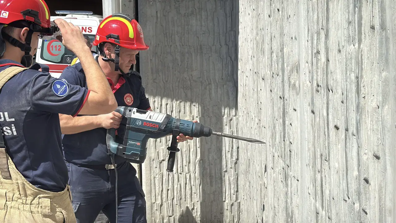 Bunun üzerine Beyoğlu Devriye Ekipler Amirliği polisleri, dar alandan içeri girerek duvarın arkasına geçti. Mahsur kalan kişiye ulaşan polis ekipleri adamın yarı çıplak, bitkin ve vücudunun çeşitli yerlerinde yara izleri olduğunu gördü. Ancak içerideki kişi bitkin olması ve alanın dar olması nedeniyle dışarı çıkarılamadı. Kişinin bulunduğu yerden çıkarılması için itfaiye ekipleri, darbeli matkapla duvarı delmeye başladı. Yaklaşık 15 santimetre kalınlığındaki duvarı bir süre matkapla delen, ardından da beton kesme aletiyle çalışma yapan itfaiye ekibi, demirleri de keserek balyozla duvarı yıktı.