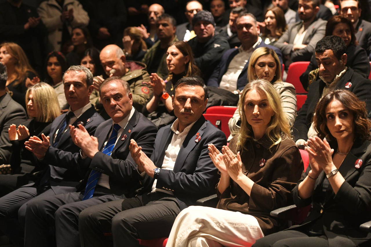 Ela Güney’in “Bu adliyedeyim. Benim bu adliyede ne işim var? Babam için diyordum. Babamın tutuklanmaya sevk edildiğini duyuyorum diyordum. Niye? Belediye başkanı oldu diye. Tek suçumuz bu galiba. Baba, seninle gurur duyuyorum öncelikle. Ona hep yazarım kalbim, kalbinin üstünde diye. İyi ki 30 yıl sonra Beyoğlu’nu kazanmışsın. İlk başlarda keşke olmasaydı diyordum, bunları yaşadığımızda. Ama sonra gördükçe gurur duydum. İyi ki diyorum, iyi ki aday olmuşsun, iyi ki hakkınla kazanmışsın burayı. Seni çok özlüyorum ama bu günler bitecek. Her zaman dediğim gibi oradan dimdik çıkacaksın, daha güçlü çıkacaksın ve yanımıza geleceksin ve bu ülke sizin sayenizde güzel günler görecek. İyi ki İnan Güney benim babam” sözleri salondakilere duygu dolu anlar yaşattı.