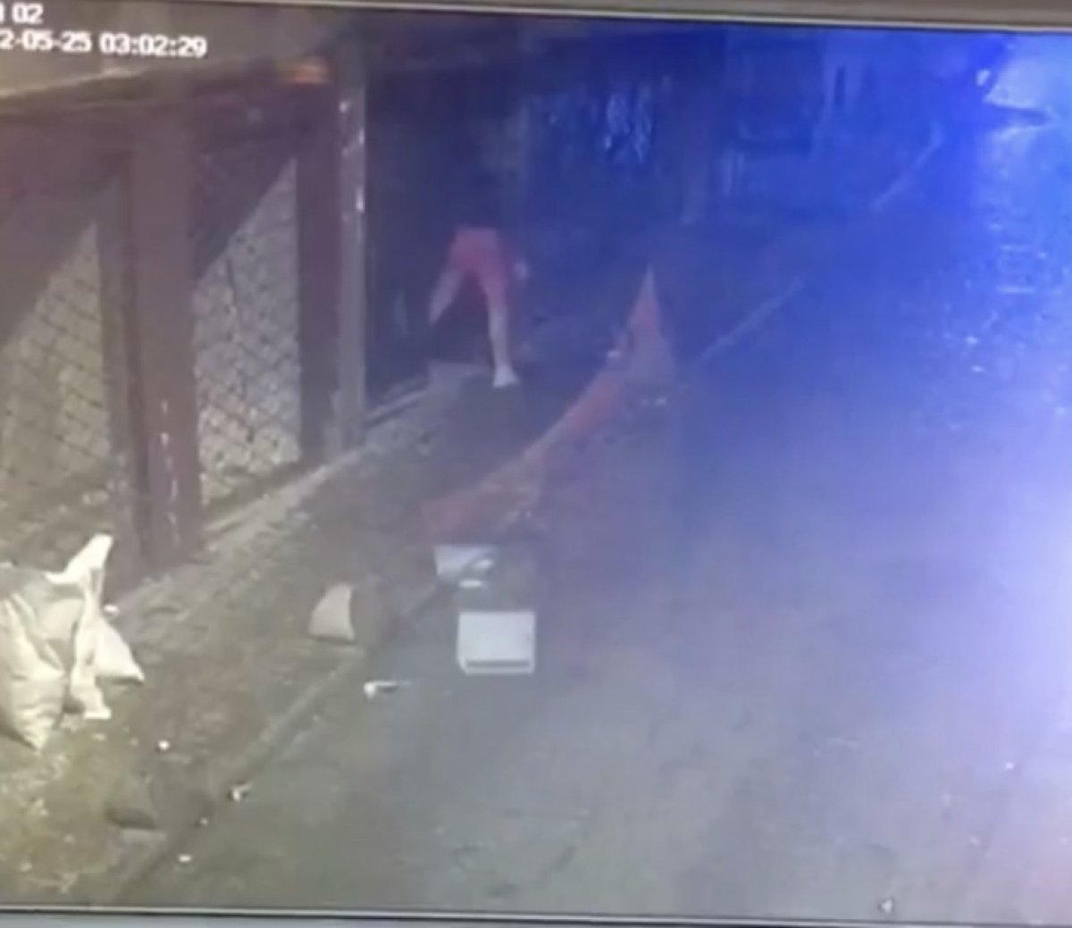 Yaşanan olayın ardından gençlerin binaya girişi ve daha sonra kadınları kovaladığı anlar ise güvenlik kamerasına yansıdı.