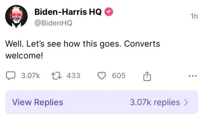 Joe Biden’ın 2024 başkanlık seçimlerini yürüten ekibi, Trump tarafından kurulan ve büyük ölçüde onu destekleyen takipçilerinin hakim olduğu Truth Social sosyal medya platformuna “BidenHQ” adlı hesabıyla katıldı.