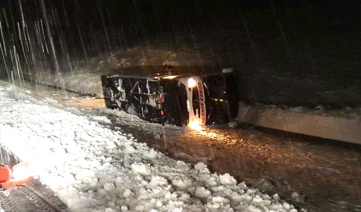 Sürücüsünün kimliği henüz öğrenilemeyen Cesur firmasına ait yolcu otobüsü, kar ve tipinin etkili olduğu Karlıova-Erzurum kara yolunun Boncukgöze köyü mevkisinde devrildi.