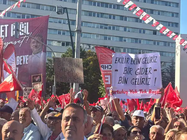 CHP lideri Özgür Özel, partisinin yarın görülecek kurultay davası öncesi bugün Ankara’da binlerce yurttaşın katılımıyla “Vesayet değil siyaset. Kayyuma, darbeye hayır” sloganıyla miting düzenledi.