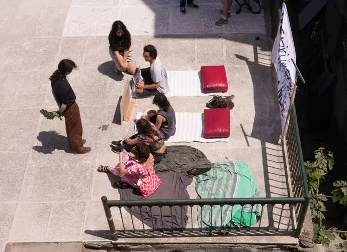 Hamlin Hall’un yurt olmaktan çıkarılmasına ve yurt krizine karşı öğrenciler Hamlin’in önüne yatak döşek serdi.