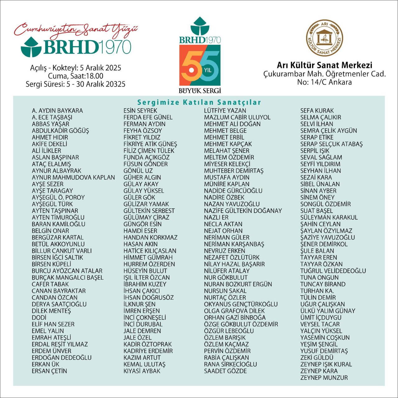BRHD “55. Yıl Büyük Sergi” açılışını Ankara Çukurambar’daki Arı Kültür Sanat Merkezi’nde yapacak.