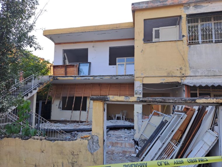 Kahramanmaraş depremlerimde ağır hasar alan 2 katlı müstakil evin balkon kısmında çökme yaşandı.