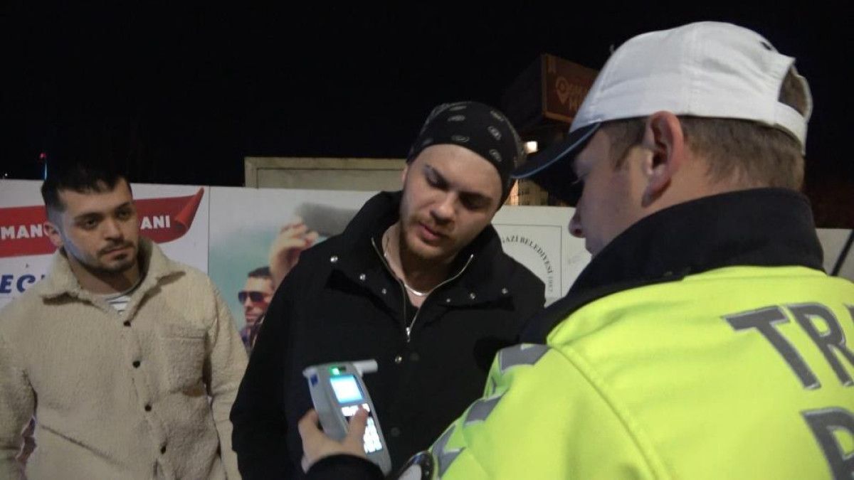 Gençleri polis ile ısrarı kameraya yansırken, alkollü bir sürücü ise uygulama noktasını görünce frene bastı.
