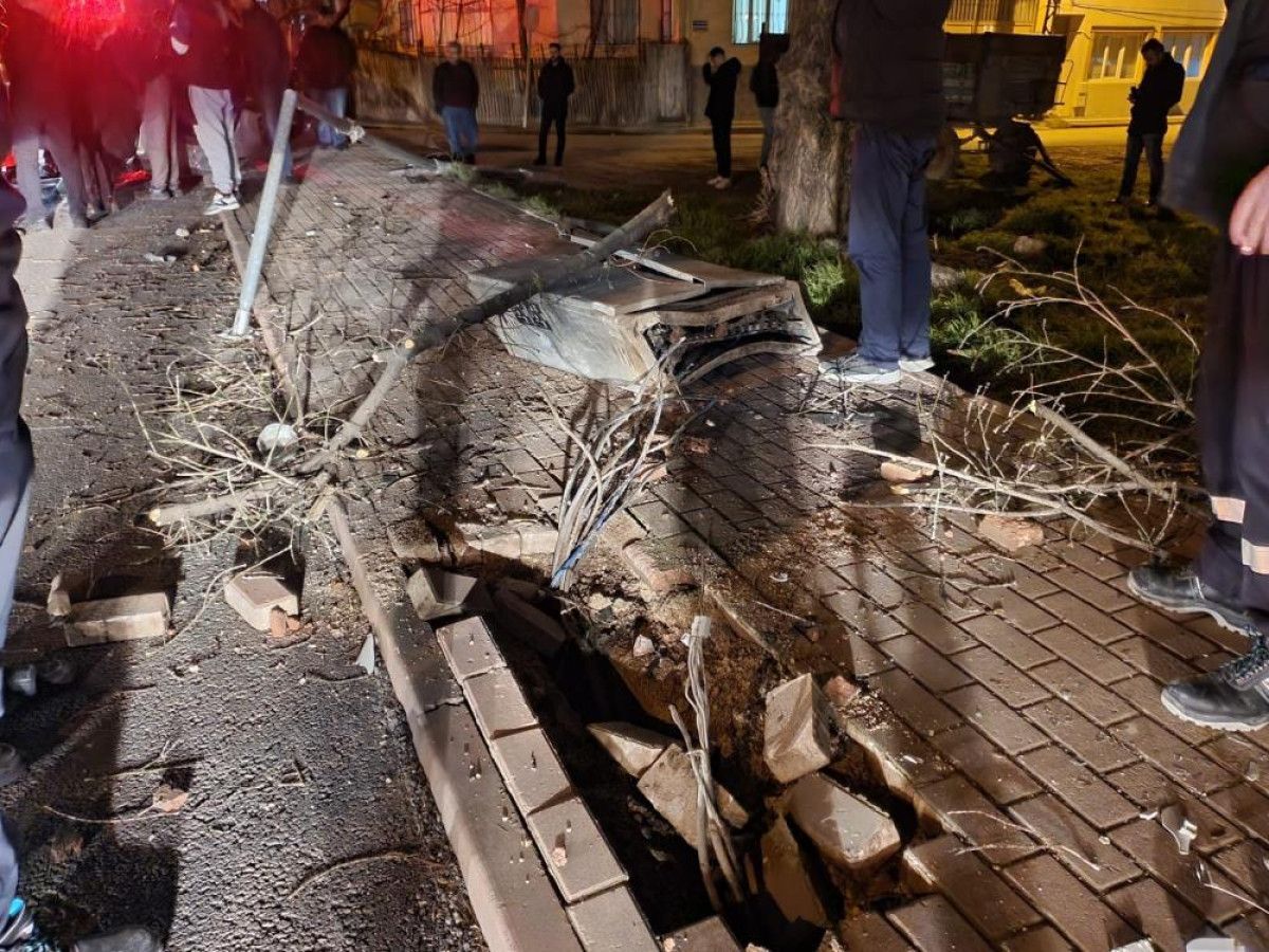 Önce elektrik panosuna sonra da direğe çarpıp takla attı