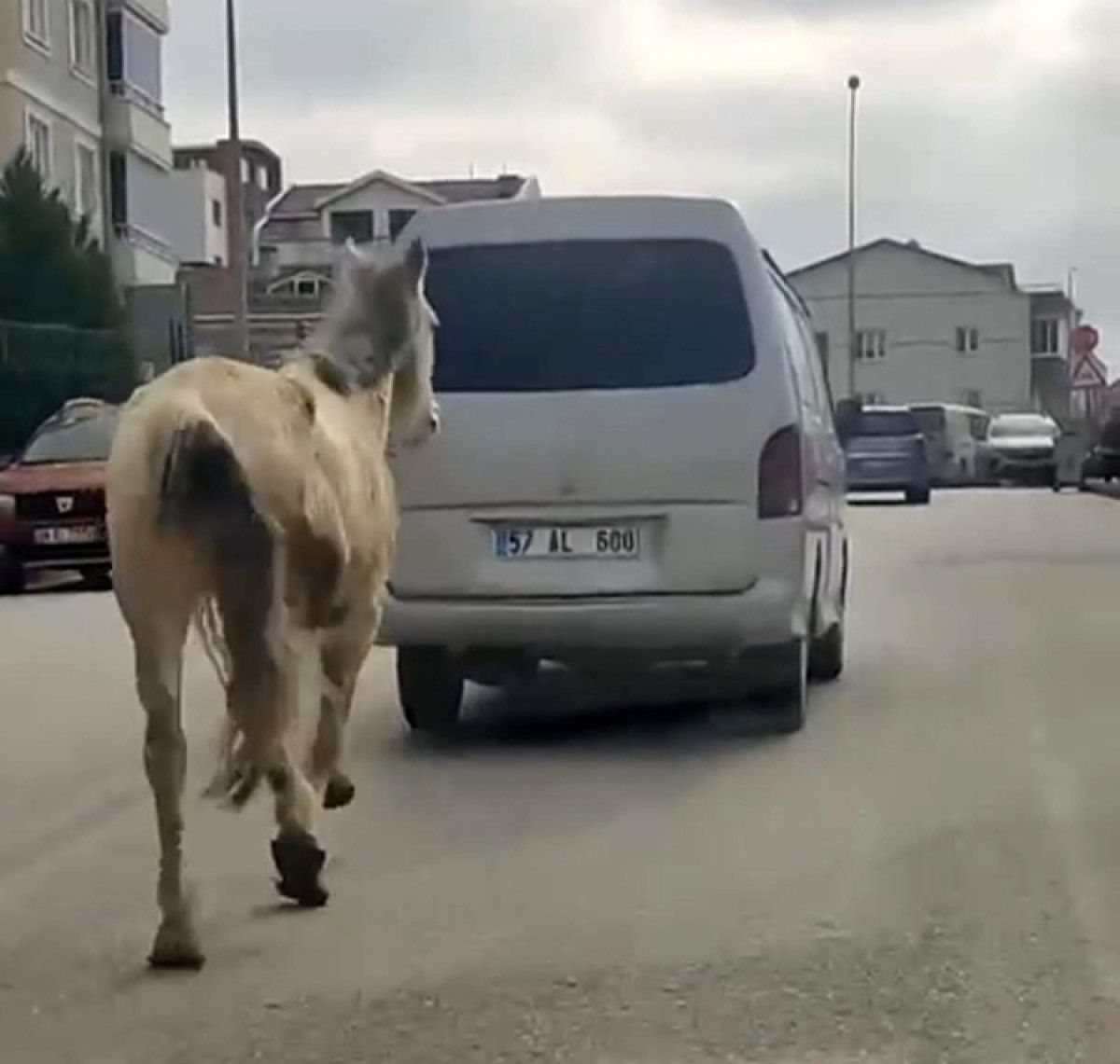 ilçesi Yunuseli Mahallesi’nde henüz ismi öğrenilemeyen bir araç sürücüsü, atını götürmek için akılalmaz bir yönteme başvurdu.