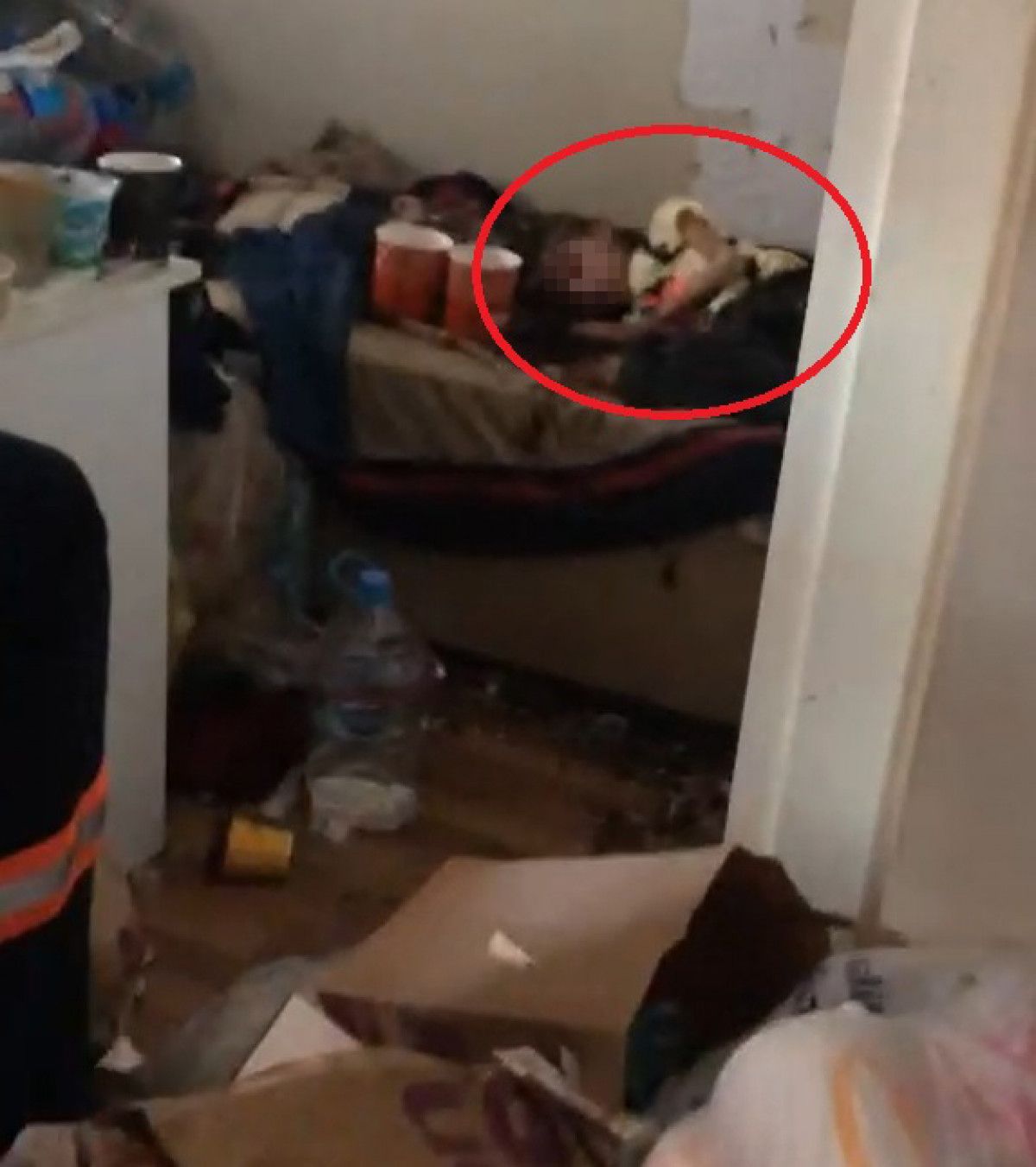 Eve gelen ekipler, temizlik çalışmasına başladıkları sırada bir odanın kapısının kitli olduğunu saptadı. Kapıyı kırarak içeri giren temizlik görevlileri, çöplerle dolu odada baygın halde yatan bir çocukla karşılaştı.