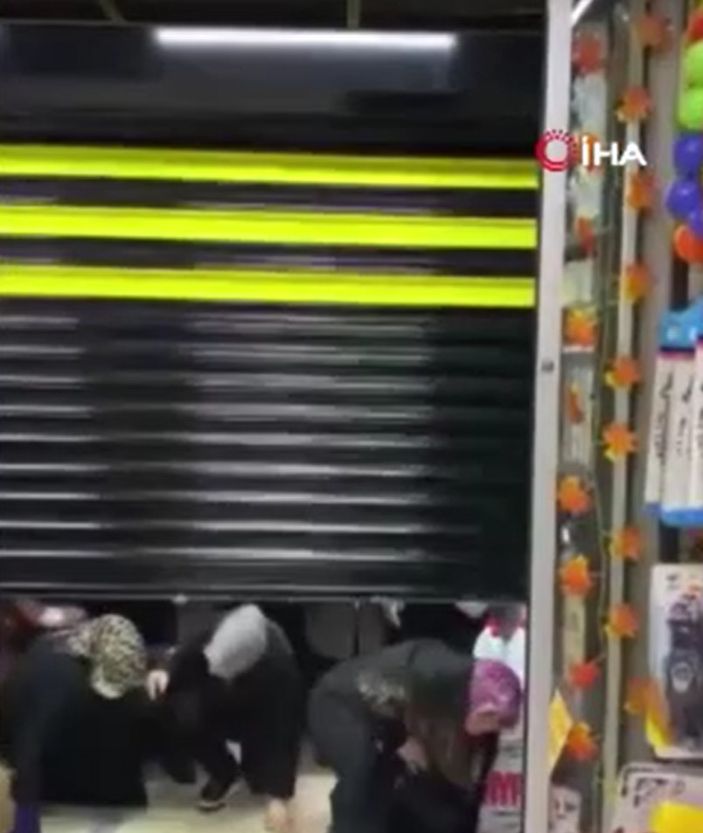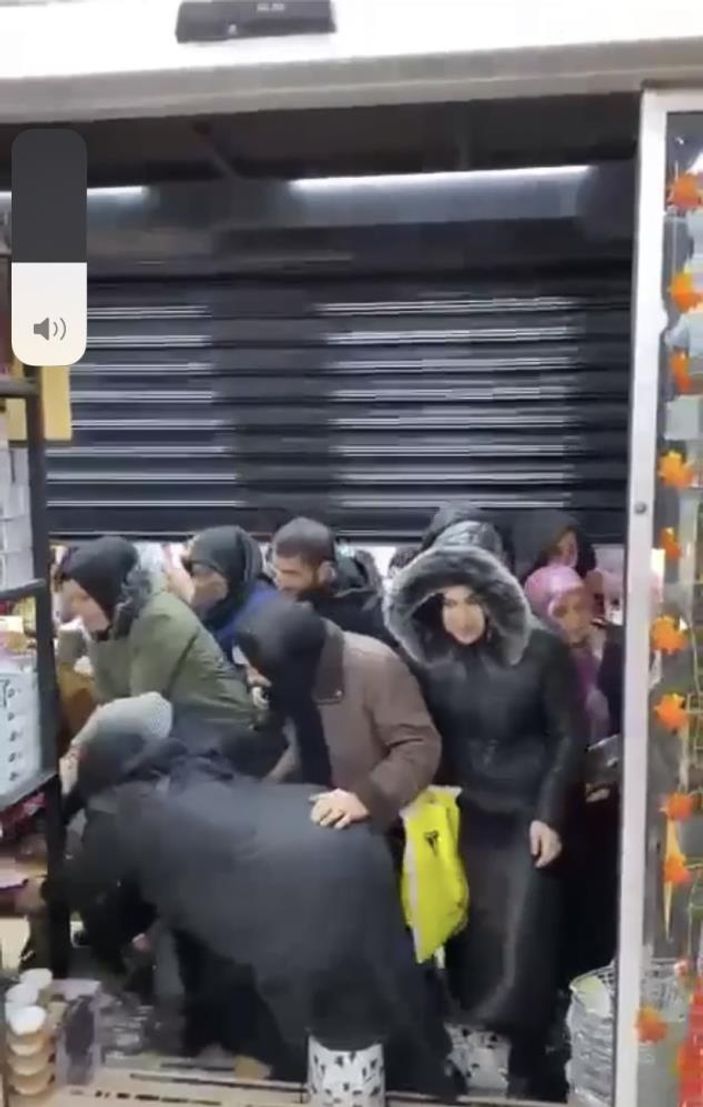 Kapıdaki görevlilere de zor anlar yaşatan vatandaşlar, birbirlerini ezip dükkana ulaştılar.