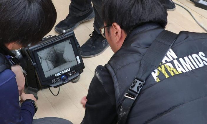 ScanPyramids Projesi’nden bilim insanlarının oluşturduğu takım, ana girişin üzerinde 9 metre uzunluğunda 2 metre genişliğinde saklı bir iç koridor tespit etti.