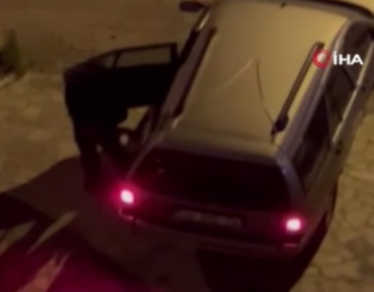 Aracın camını kırarak içeri girmeye çalışan hırsızların çıkardıkları sesi araç sahibi Emre Hacıhasanoğlu duydu.
