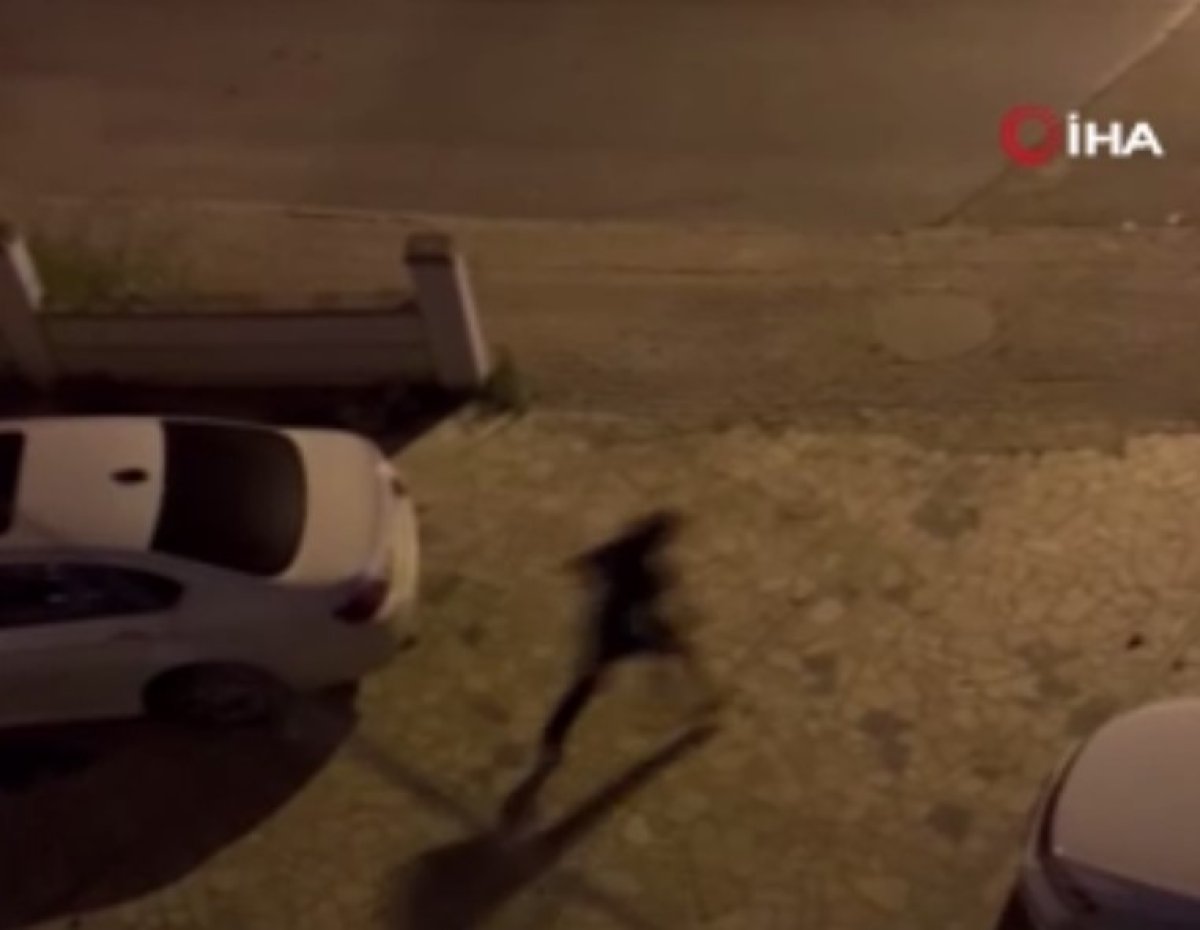 Evde yaşayanların kendilerine bağırmasına rağmen gösterge panelini sökmeye devam eden hırsızlar, birkaç kişinin aşağı indiğini görünce kaçmaya başladı.