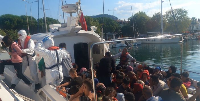 Sahil Güvenlik botları ‘TCSG-8’ ve KB-20’ tarafından bot içindeki 62 kaçak göçmen kurtarıldı.