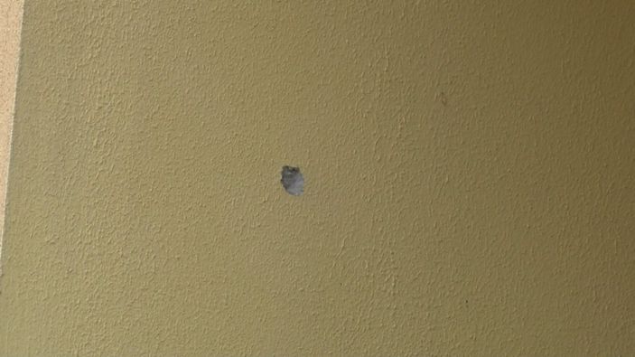 Yapılan incelemelerde binaya isabet etmiş kurşun deliklerine rastlandı.