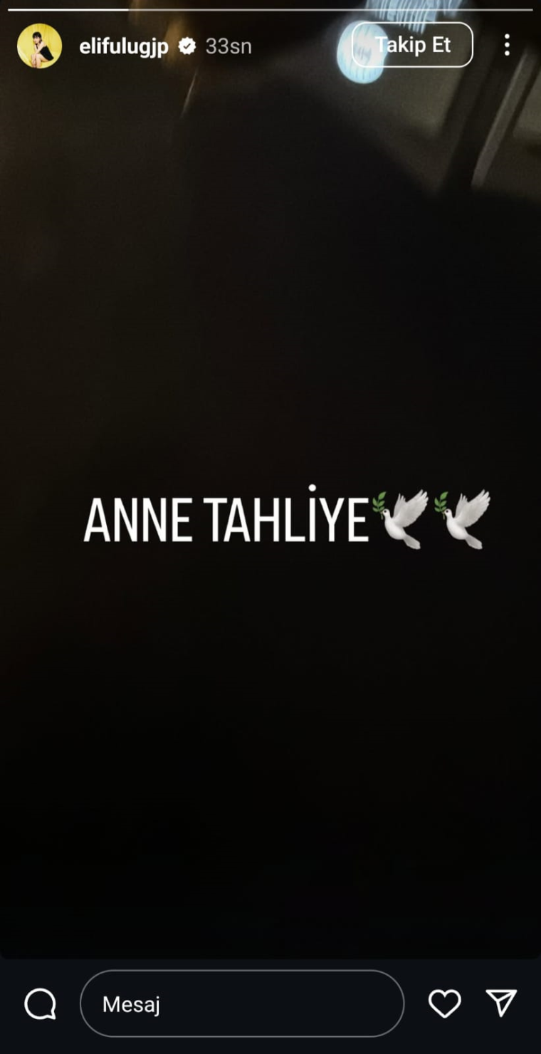 400 bini aşkın takipçisi bulunan hesabından yaptığı paylaşım ile Uluğ, “Anne tahliye” ifadelerini paylaştı.