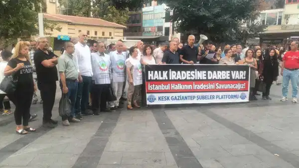 Gaziantep’te Balıklı Meydanı’nda toplanan Emek ve Demokrasi Güçleri de kayyum uygulamalarını protesto etti. KESK Dönem Sözcüsü İsmet Karatay, “Kayyumlar halkın iradesine açık bir müdahaledir. Bugün aynı zihniyet demokrasimizi kuşatma altına almaya çalışıyor” dedi. Karatay, kayyumların geçmişte işsizlik ve borç yükü bıraktığını belirterek, CHP İstanbul İl Başkanlığı’na yönelik girişimin de halkın iradesine saldırı olduğunu ifade etti.