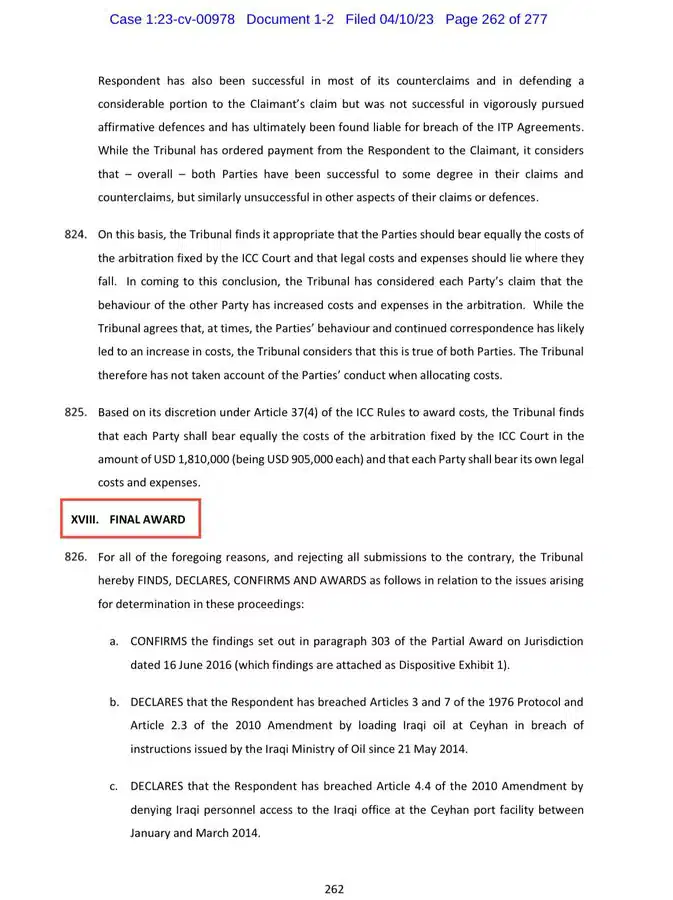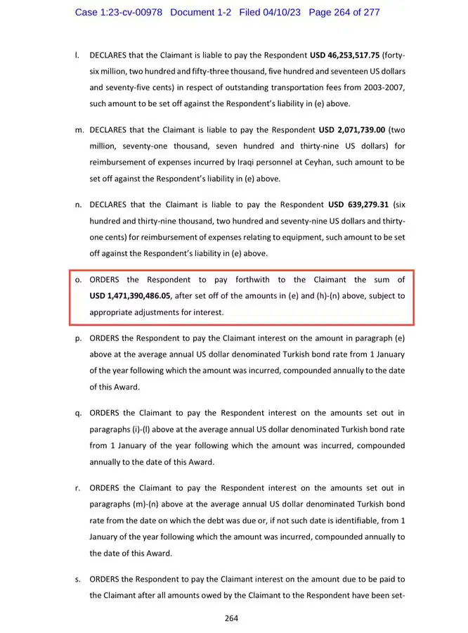 Kaynak: 13.02.2023 tarihli Uluslararası Tahkim Mahkemesi Kararı (İngilizce-Türkçe)”