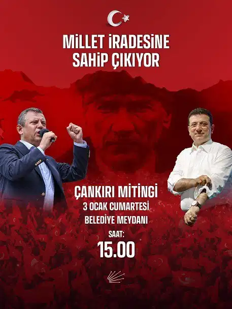 CHP’nin yeni mitingi 3 Ocak Cumartesi günü Çankırı’da gerçekleştirilecek.