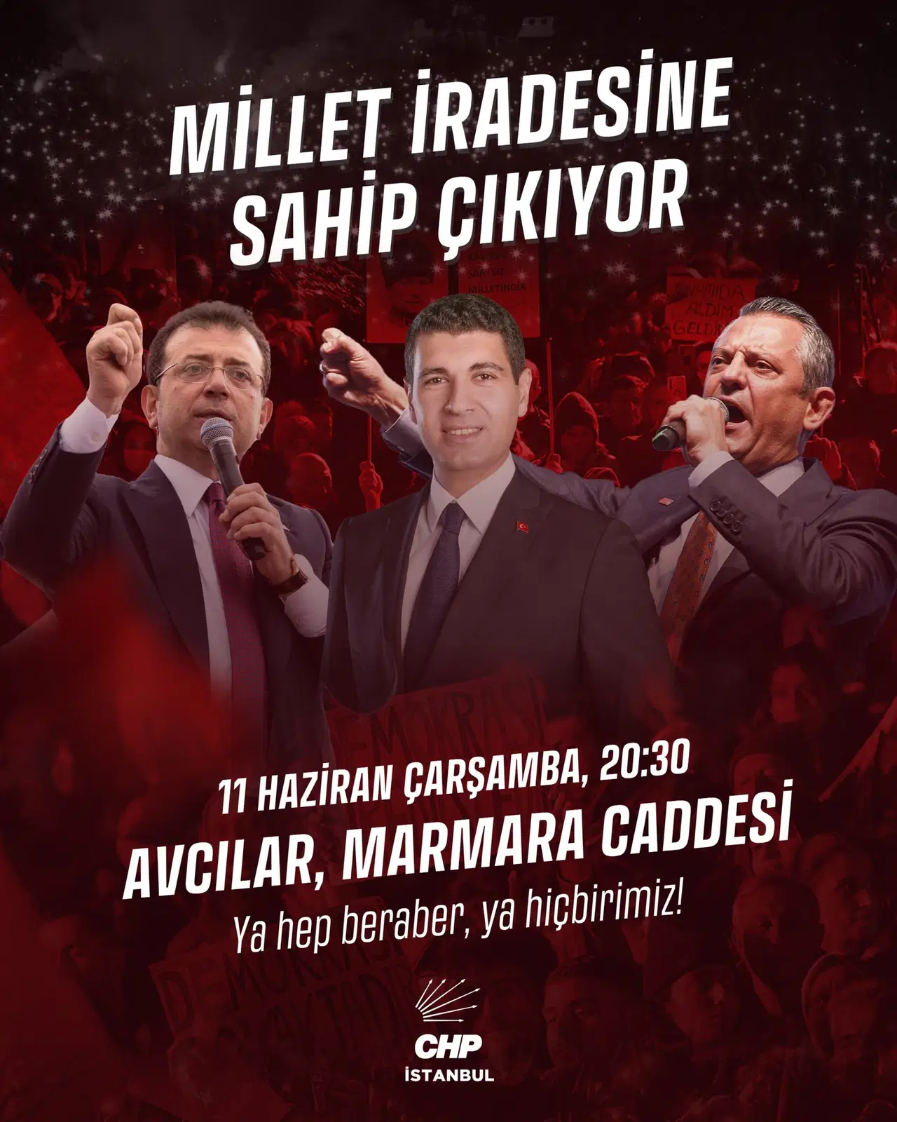 11 Haziran Çarşamba günü, ilçe mitinglerinden dokuzuncusu düzenlenecek. CHP İstanbul İl Başkanı Özgür Çelik, dokuzuncu mitingin Avcılar’da yapılacağını duyurdu.